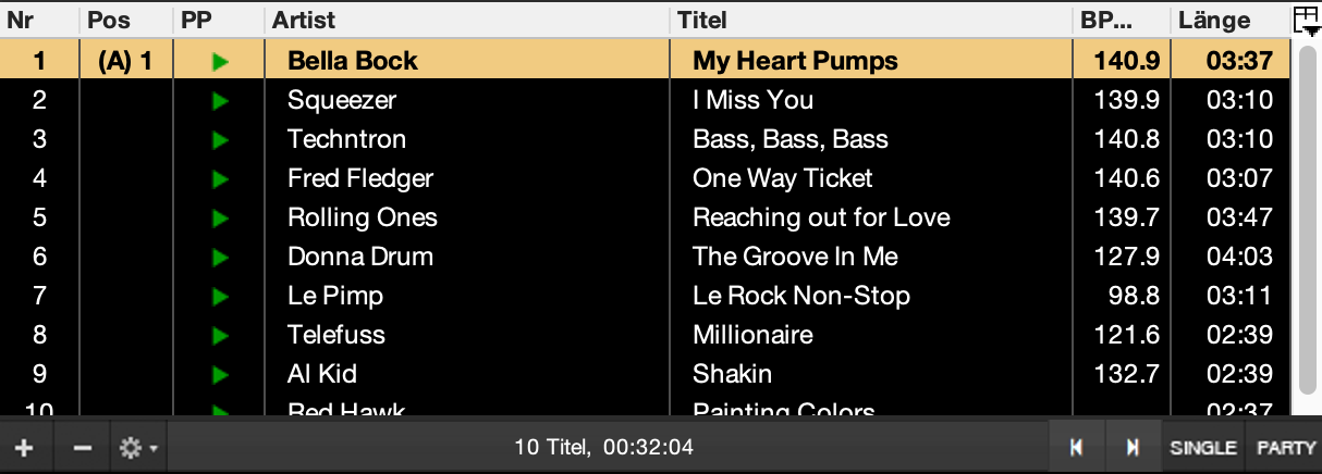 The columns of the table can be shown or hidden. The button for this is located right next to the table headers. The Playlist is divided in various columns. Each column contains characteristic information: