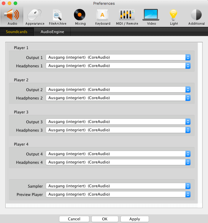 Note: When using UltraMixer you have the possibility to use three different types of sound cards: integrated soundcards, external or USB soundcards, and MIDI controller sound cards. In the following, we show you how to set up each sound card.