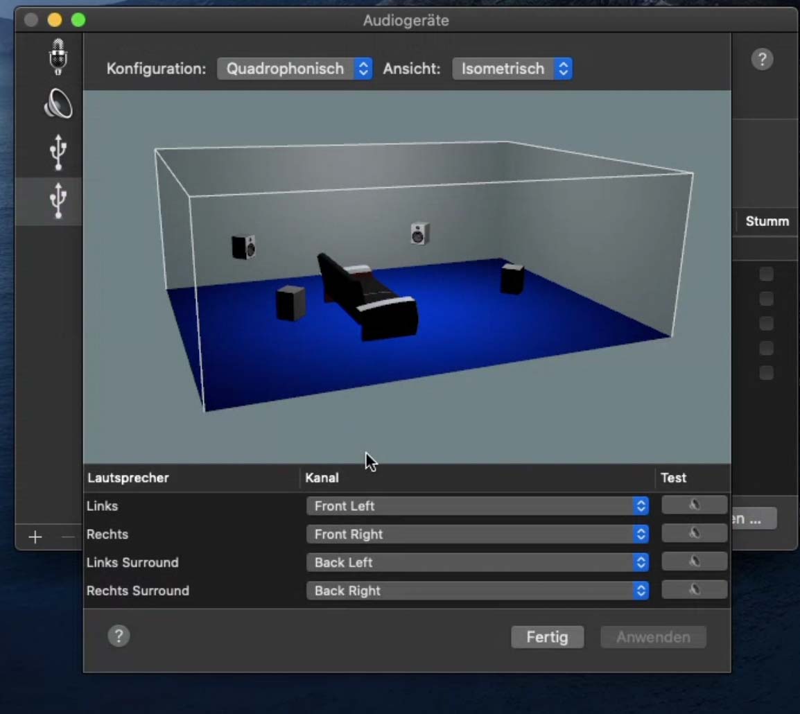 In your soundcard or MIDI Controller settings there might be different channels, like “front”, “rear”, and “all”. UltraMixer will display the same sound setting options, as your Mac or Windows.