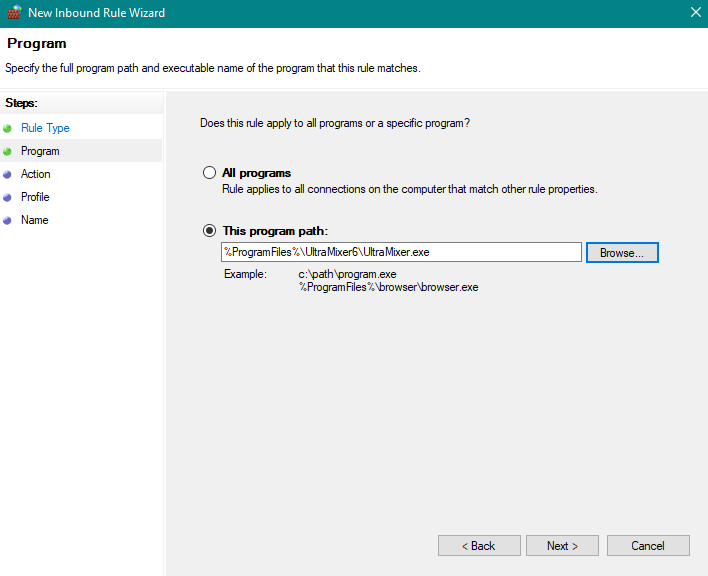 If you cannot see the automatic entries for your UltraMixer, you can manually allow the program through your firewall.